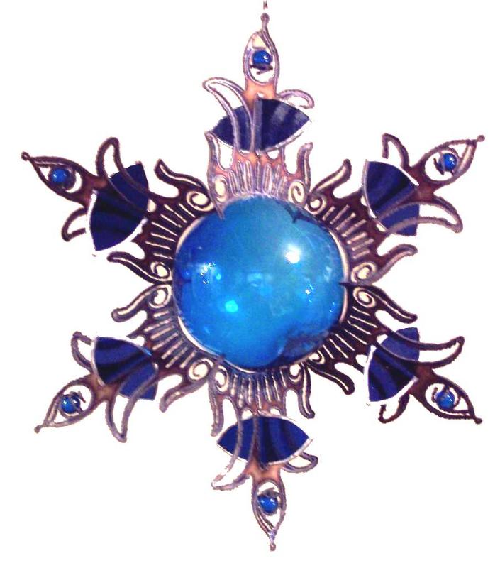 3D sculptured stainless steel sun burst with stained glass,glass ball center,& glass marbles